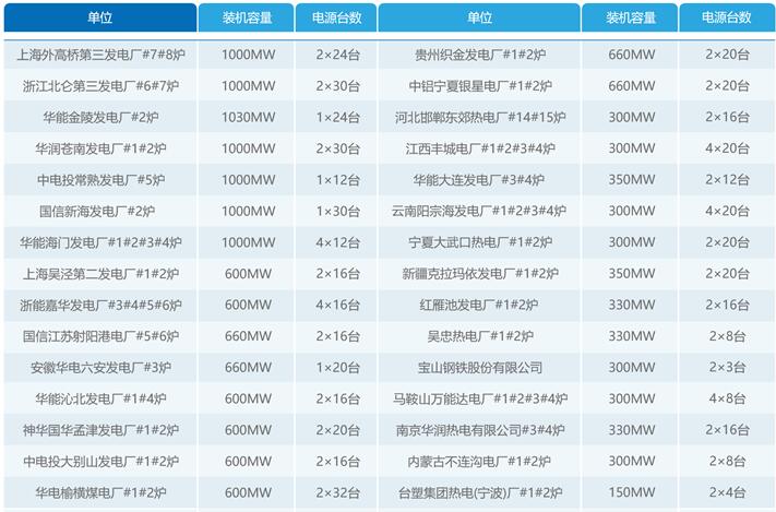 HF系列電除塵器高頻電源典型業(yè)績(jì)表